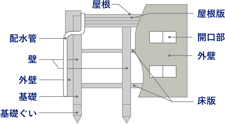 基礎・外壁・室内は床や壁、床下や屋根裏に至るまで詳細に検査を行います。