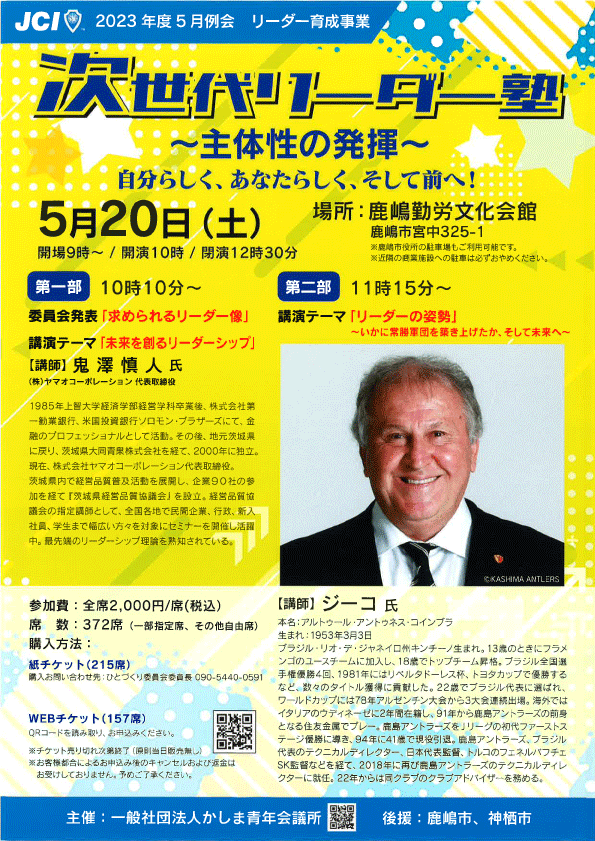 一般社団法人かしま青年会議所様より講演のお知らせです。