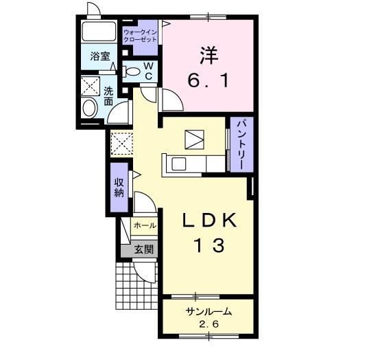 洋室6.1畳、LDK13.0畳 |
