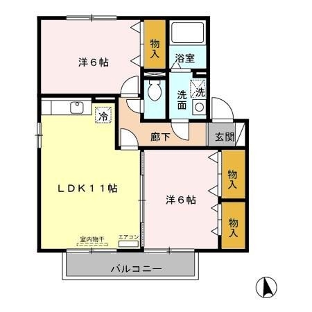 洋室6.0畳、洋室6.0畳、LDK11.0畳 |