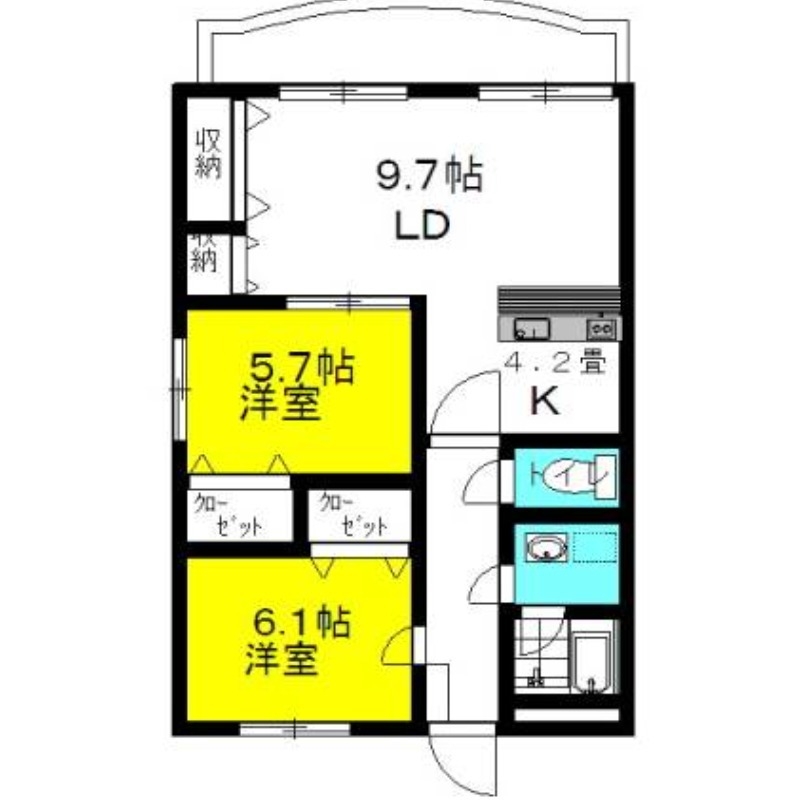 LD9.7畳、洋室5.7畳、洋室6.1畳 |